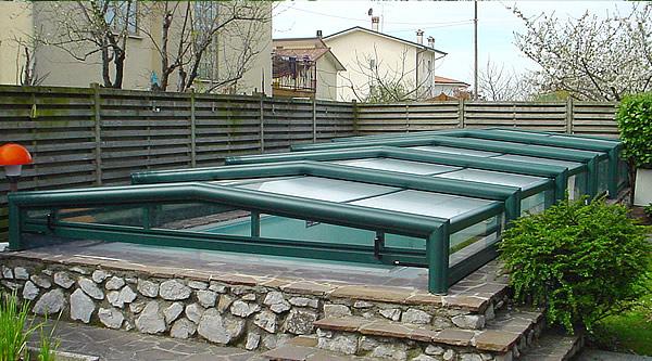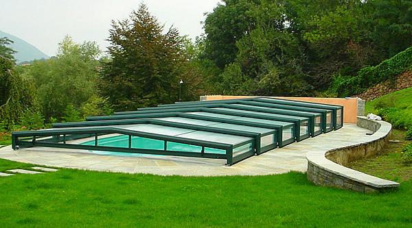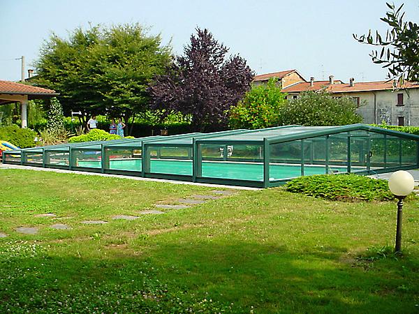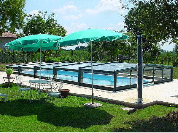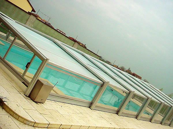 Integrale 100The standard width of the INTEGRALE 100 pool cover is up to 8 m (outer measurements - see technical specifications) or more with strong profiles and for other versions. Upon special order, we can provide an offer for greater widths or suggest another type of pool cover. The maximum pool cover height may also be lower. The minimum side (inner) height may also be lower than 100 cm. All types of additional equipment are possible: any type of side glazing, electric motor drive, (in special cases) special INOX rails for sliding the cover or tinted cover ceiling, etc., different doors and windows depending on the cover height, etc. The cover design and dimensions are fully adaptable to your wishes and needs. For more details, see the technical specifications of the STRONG LINE retractable covers. |