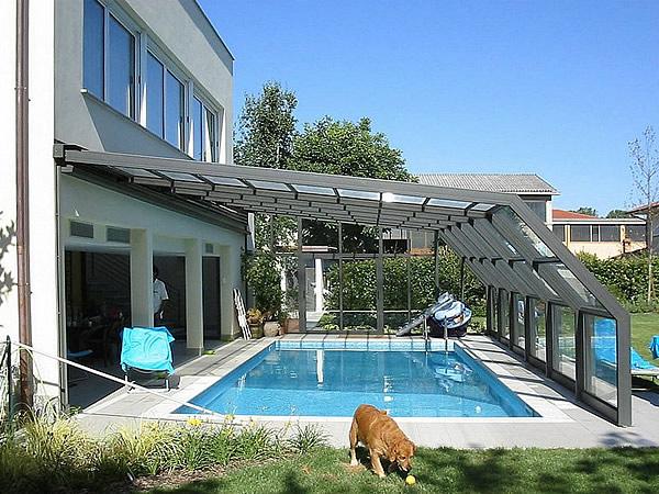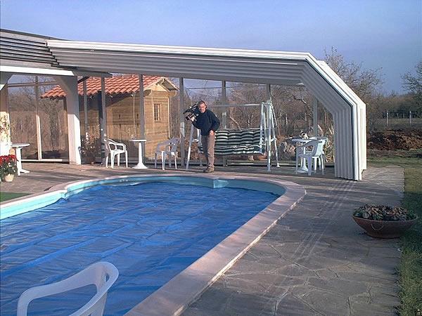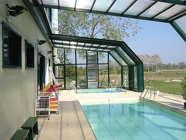 Mono 180-2The standard width of the MONO 180-2 pool cover is up to 6.5 m (outer measurements - see technical specifications) or more with strong profiles and for other versions. Upon special order, we can provide an offer for greater widths or suggest another type of pool cover. The pool cover height may also be lower or higher, depending on your requirements. All types of additional equipment are possible: any type of side glazing, the desired number of doors and windows, electric motor drive, (in special cases) special INOX rails for sliding the cover or tinted cover ceiling, etc. The cover design and dimensions are fully adaptable to your wishes and needs. For more details, see the technical specifications of STRONG LINE retractable covers. |