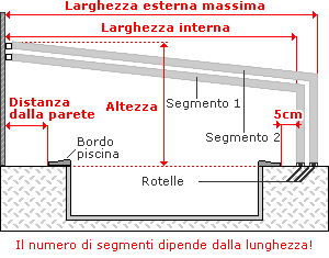 Per via di troppe varie combinazioni della vetrata ed equipaggiamento aggiuntivo il prezzo dettagliato vi verra calcolato dopo una visita informativa. LISTINO PREZZI DELLE COPERTURE "STRONG LINE" - informazioni dettagliate sui prezzi delle coperturePer le coperture mobili ROYAL DOLPHIN STRONG LINE non è possibile preparare un listino esatto, visto che le diversità costruttive sono innumerevoli. Dalle informazioni tecniche della copertura emerge che le possibilità costruttive della copertura mobile sono moltissime. Molti elementi delle coperture mobili possono essere adeguati alle singole richieste. Le coperture mobili STRONG LINE sono sempre costruite come progetto unico, la struttura portante è sempre calcolata singolarmente per ogni caso in base alle specifiche richieste del cliente, pertanto sarebbe difficile indicare anche solo un prezzo indicativo della copertura. Il prezzo della copertura dipende da molteplici fattori come: